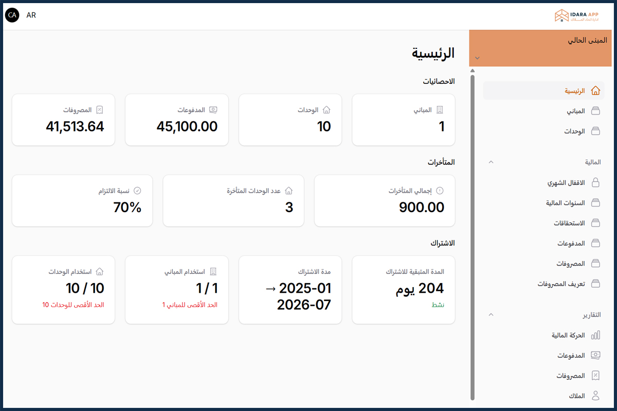 احتساب تلقائي للاستحقاقات الشهرية، متابعة المدفوعات والمتأخرات لكل وحدة أو مالك بشكل دقيق.